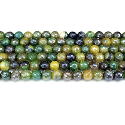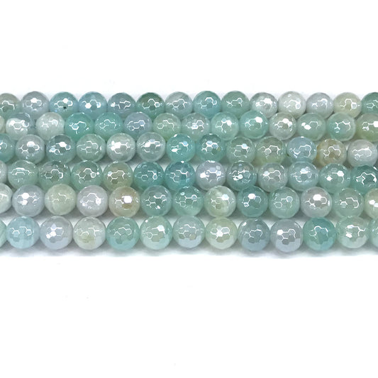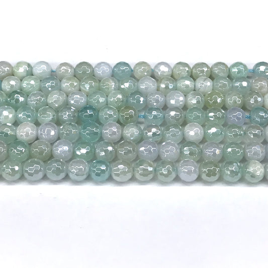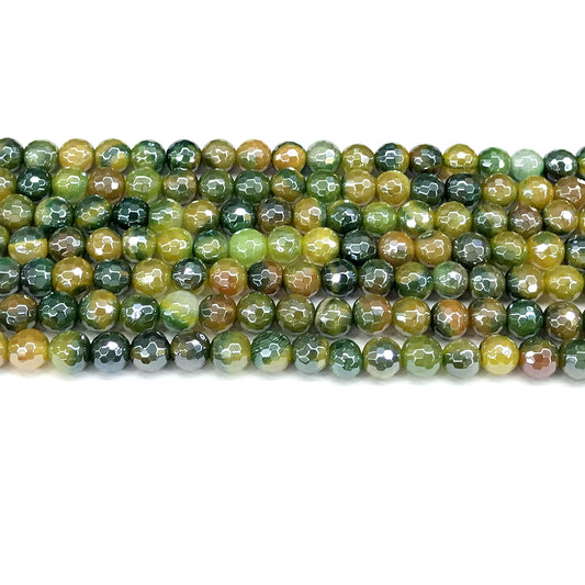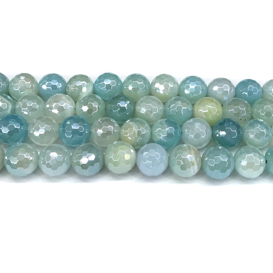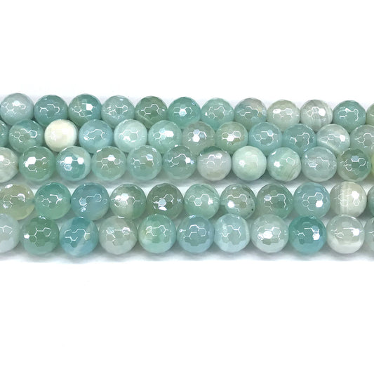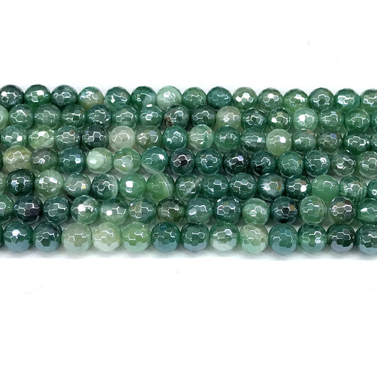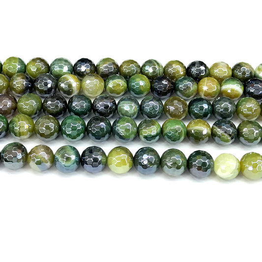 CAG840 Banded Agate Beads Electroplated Faceted Round 6mm 15" Strand