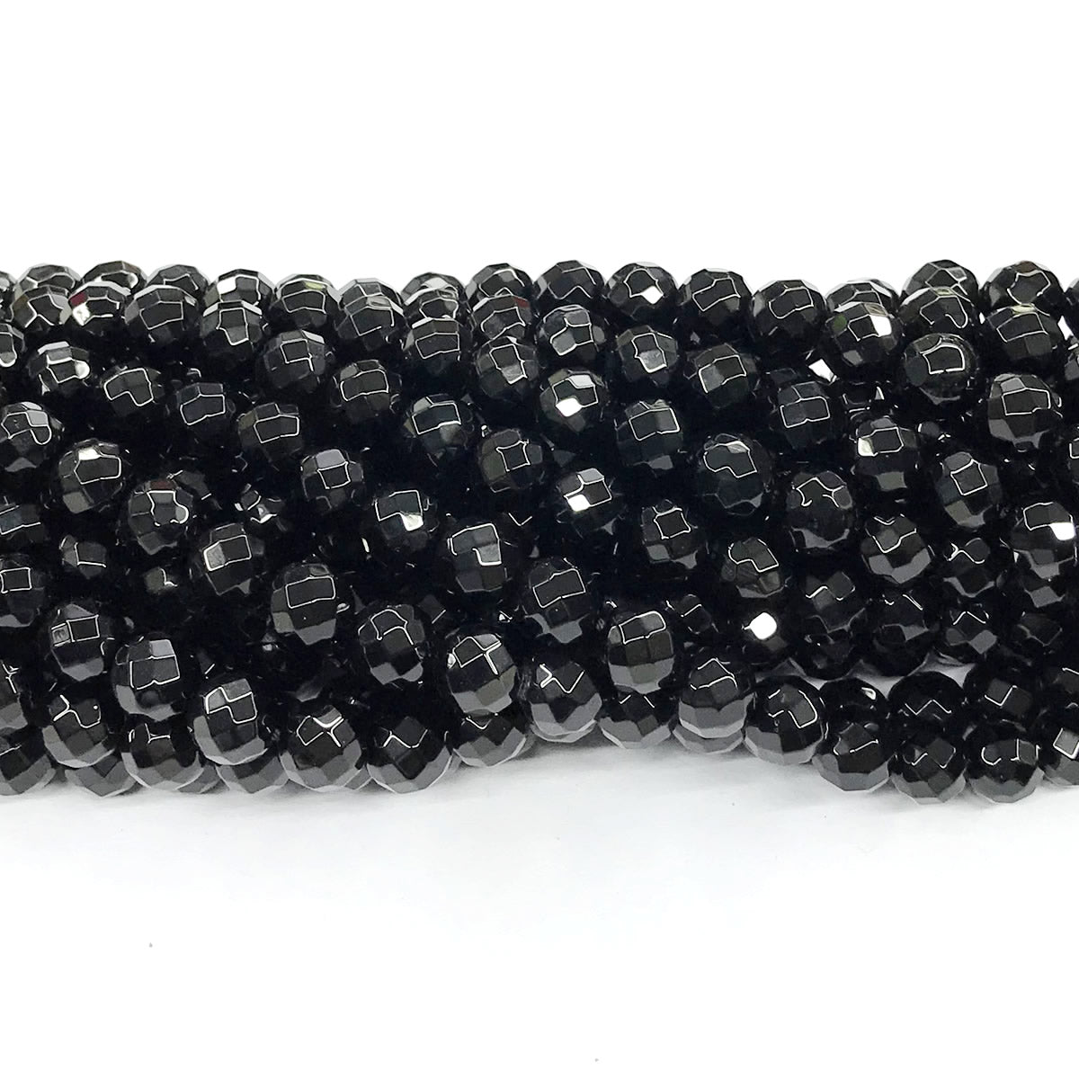 CAG209 Black Agate Beads Faceted Round 8mm 15" Strand