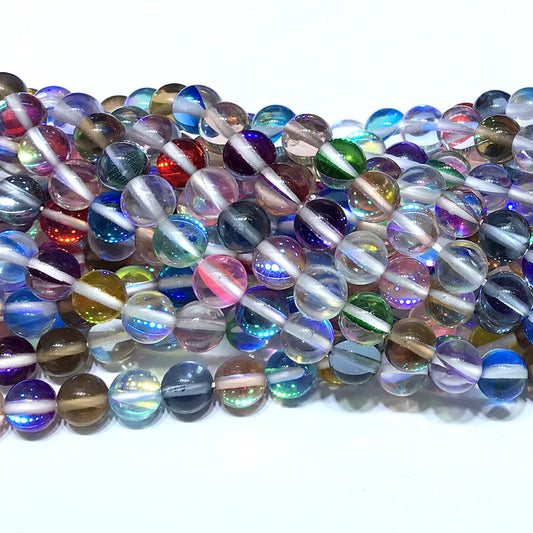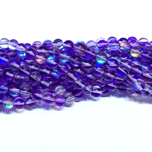 CMS501 Synthetic Moonstone Beads Smooth Round 8mm 15" Strand