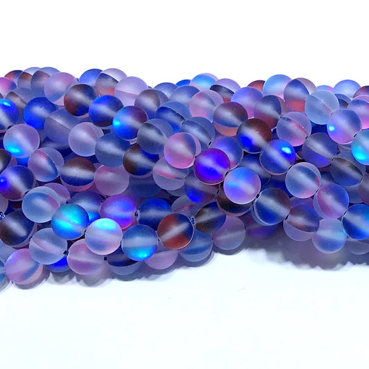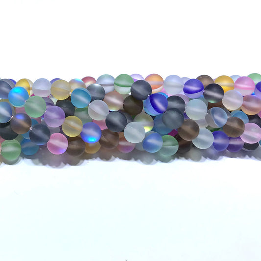 CMS471 Synthetic Moonstone Beads Matte Round 8mm 15" Strand