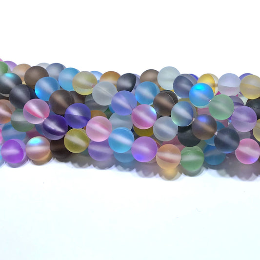 CMS462 Synthetic Moonstone Beads Matte Round 10mm 15" Strand