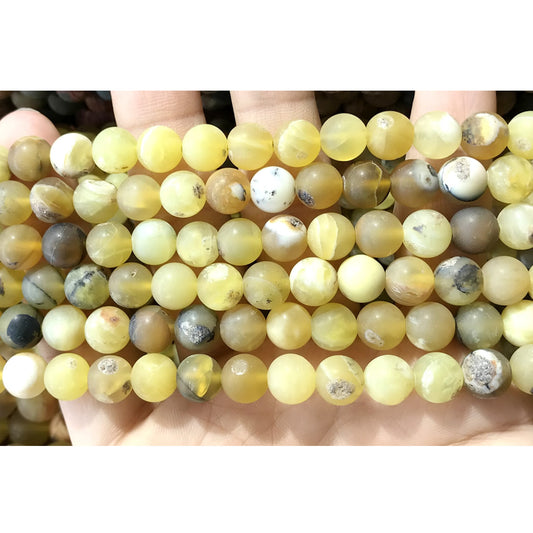COP140 Yellow Opal Gemstone Beads Matte Round 8mm 15" Strand