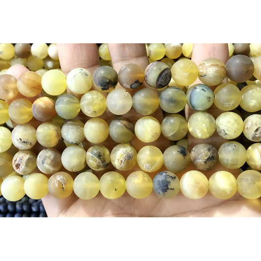 COP141 Yellow Opal Gemstone Beads Matte Round 10mm 15" Strand