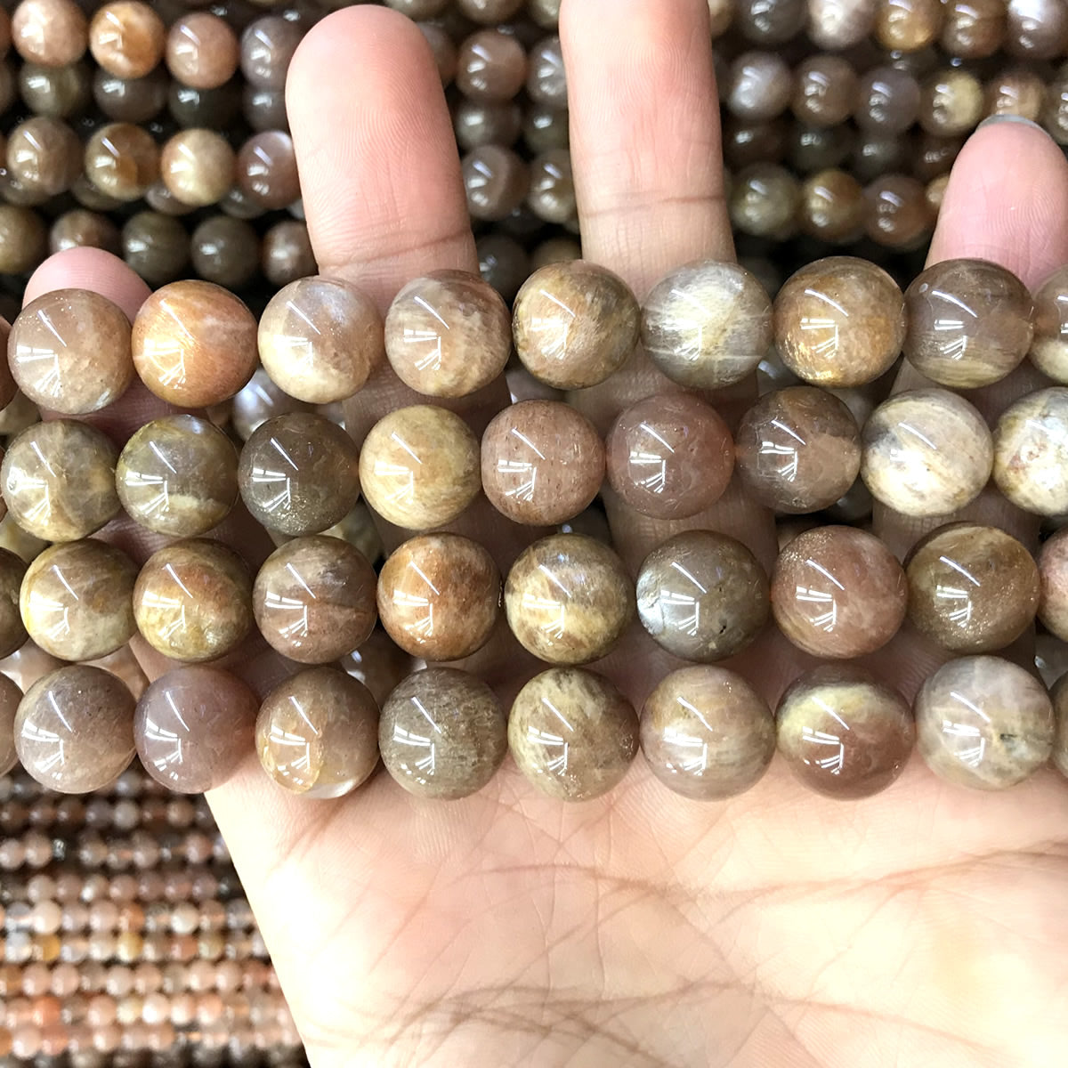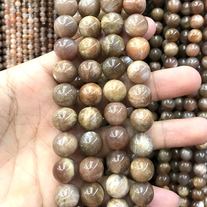 CSS45 Sunstone Gemstone Beads Smooth Round 12mm 15" Strand