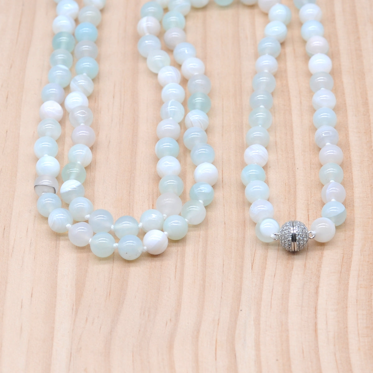8mm/10mm Round Sea Blue Banded Agate, 10mm/12mm Round Zircon Magnetic Clasp & No.72 Jade Thread