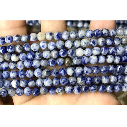 CBS01 Blue Spot Stone Beads Smooth Round 4mm 15.5" Strand