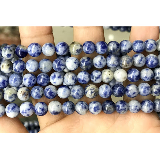 CBS03 Blue Spot Stone Beads Smooth Round 8mm 15.5" Strand