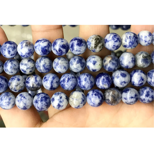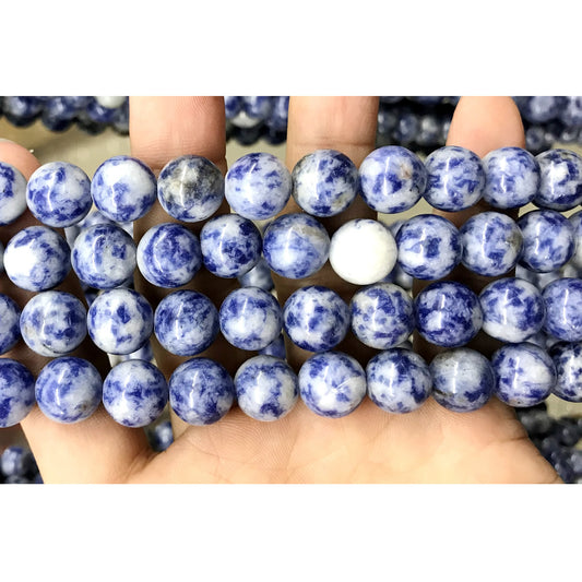 CBS04 Blue Spot Stone Beads Smooth Round 10mm 15.5" Strand