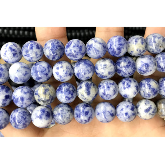 CBS05 Blue Spot Stone Beads Smooth Round 12mm 15.5" Strand