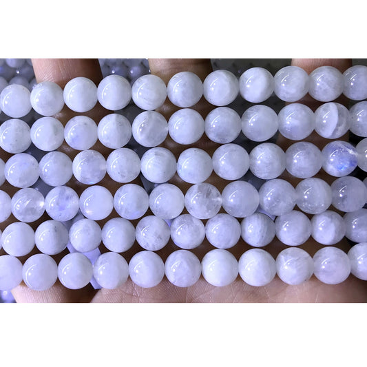 CMS74 White Moonstone Beads Smooth Round 8mm 15.5" Strand