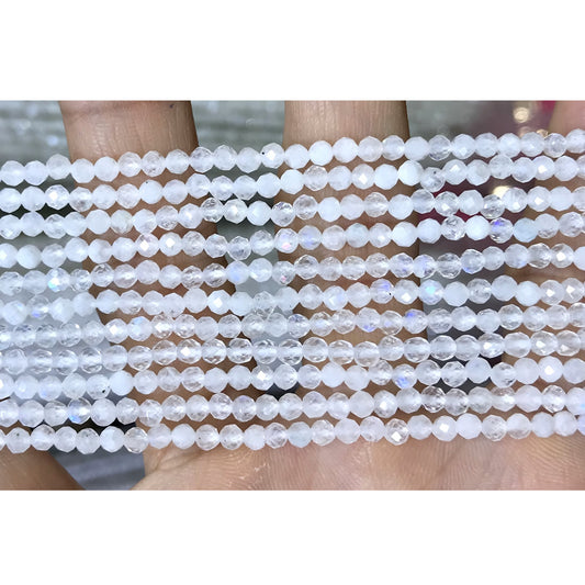 CTG200 White Moonstone Beads Faceted Round 3mm 15" Strand