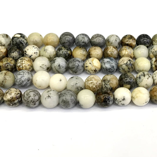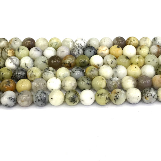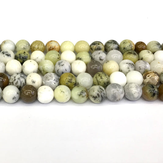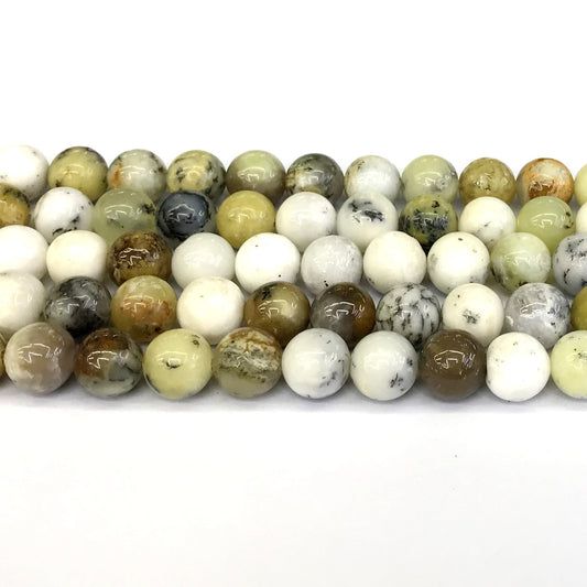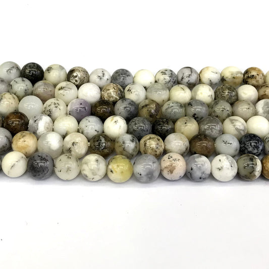 COP71 White Opal Gemstone Beads Smooth Round 10mm 15" Strand