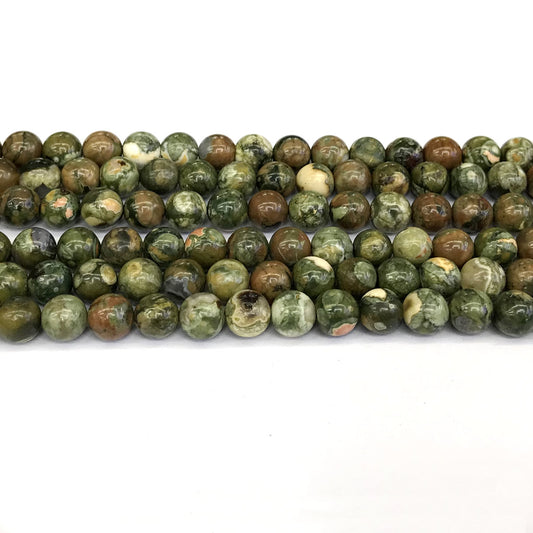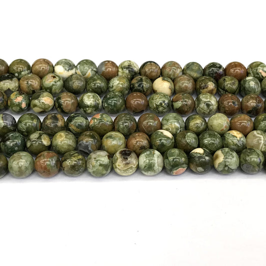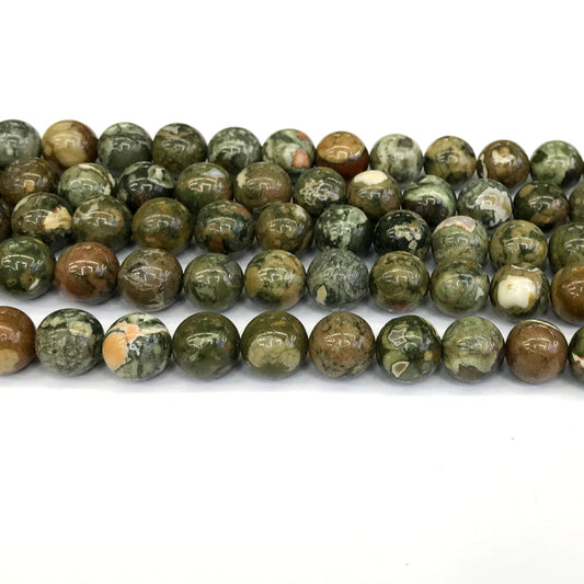 CRH04 Rhyolite Gemstone Beads Smooth Round 10mm 15" Strand
