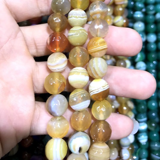 CAG1023 Banded Agate Beads Smooth Round 10mm 15" Strand