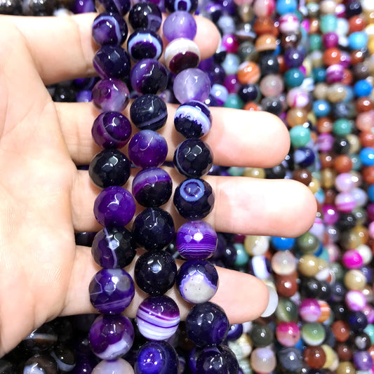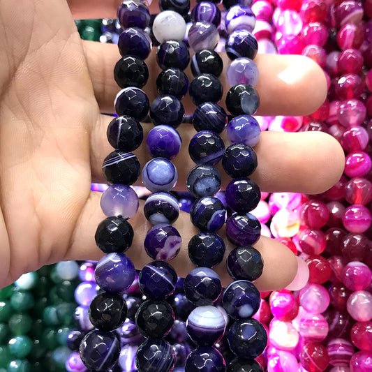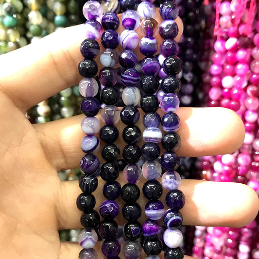 CAG1037 Banded Agate Beads Faceted Round 8mm 15" Strand