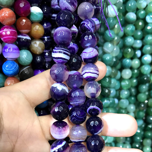 CAG1043 Banded Agate Beads Faceted Round 10mm 15" Strand