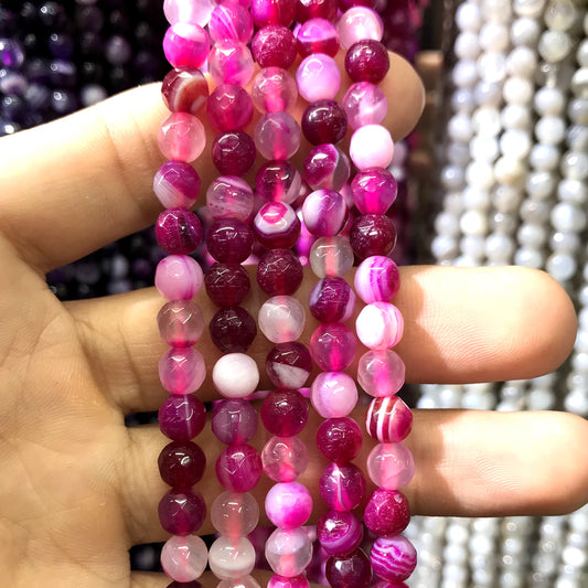 CAG1031 Banded Agate Beads Faceted Round 6mm 15" Strand