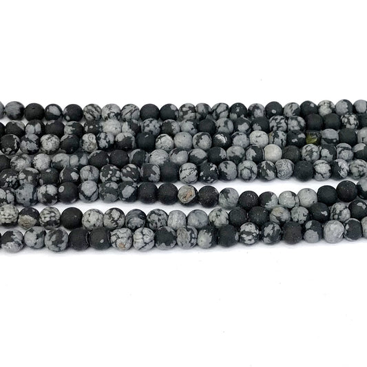 COB16 Snowflake Obsidian Beads Matte Round 4mm 15" Strand