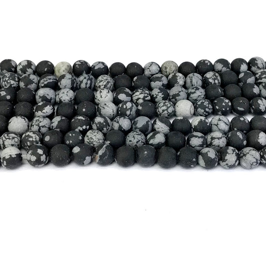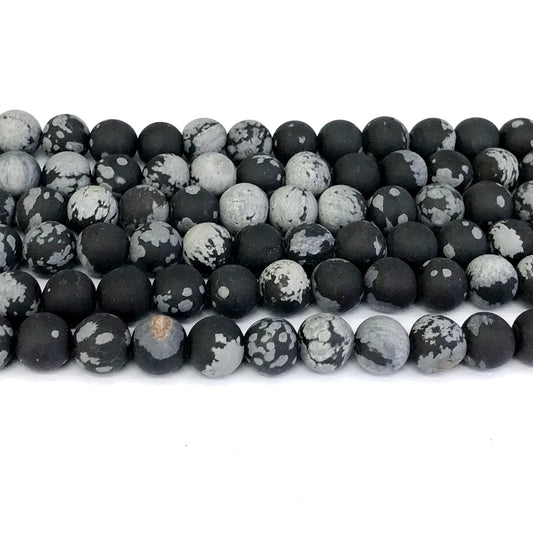 COB18 Snowflake Obsidian Beads Matte Round 8mm 15" Strand