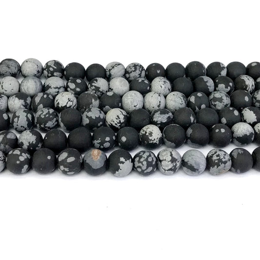 COB20 Snowflake Obsidian Beads Matte Round 12mm 15" Strand
