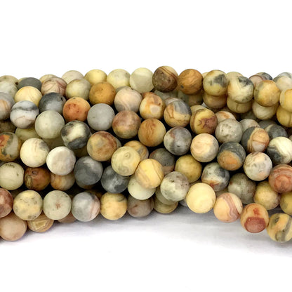 CAG161 Yellow Crazy Lace Agate Beads Matte Round 10mm 15" Strand