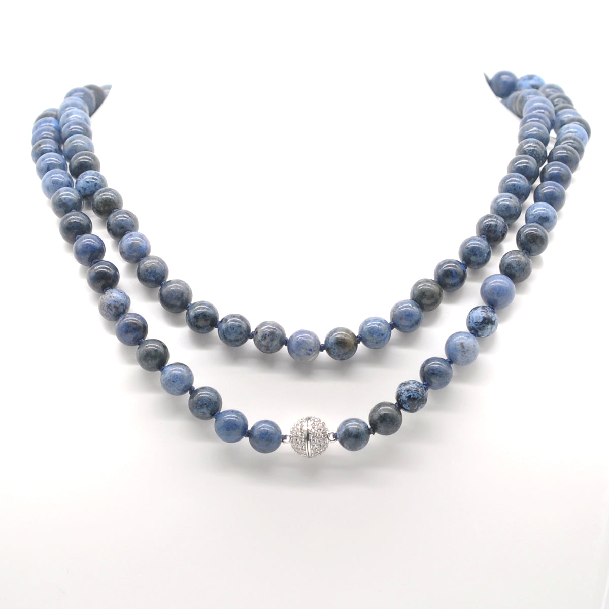 8mm/10mm Round Dumortierite, 10mm/12mm Round Zircon Magnetic Clasp & No.72 Jade Thread