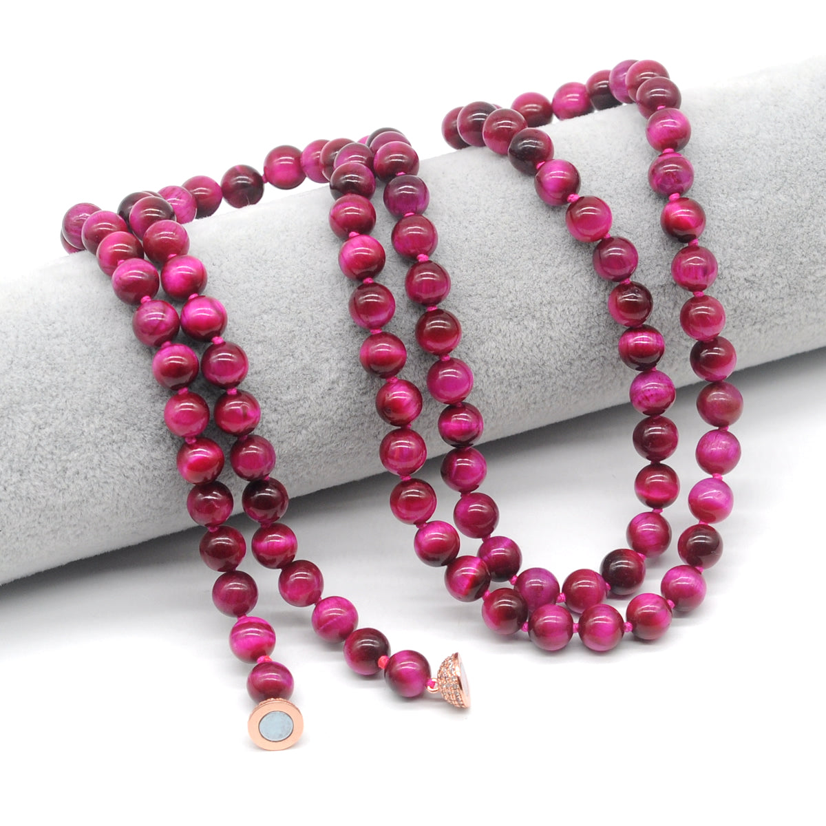 GMN303 Hand-Knotted Red Tiger Eye Beaded Necklace 8mm 10mm