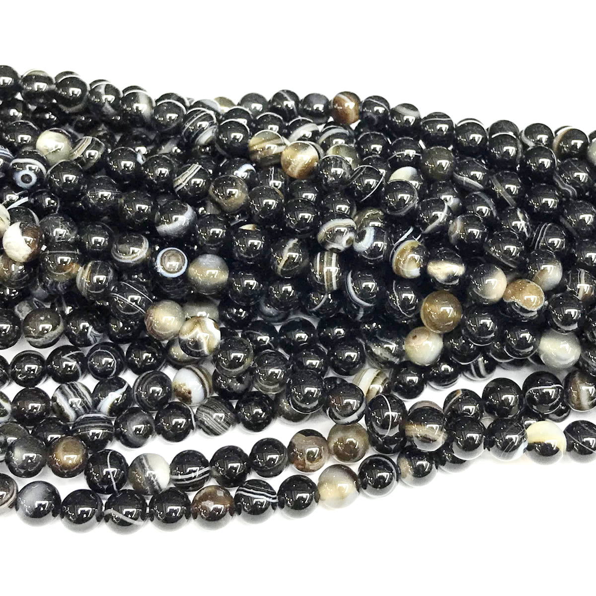 CAG476 Black Banded Agate Beads Smooth Round 6mm 15" Strand