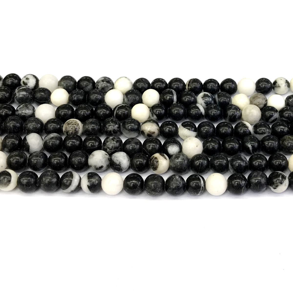 CJP201 Black & White Jasper Beads Smooth Round 6mm 15" Strand