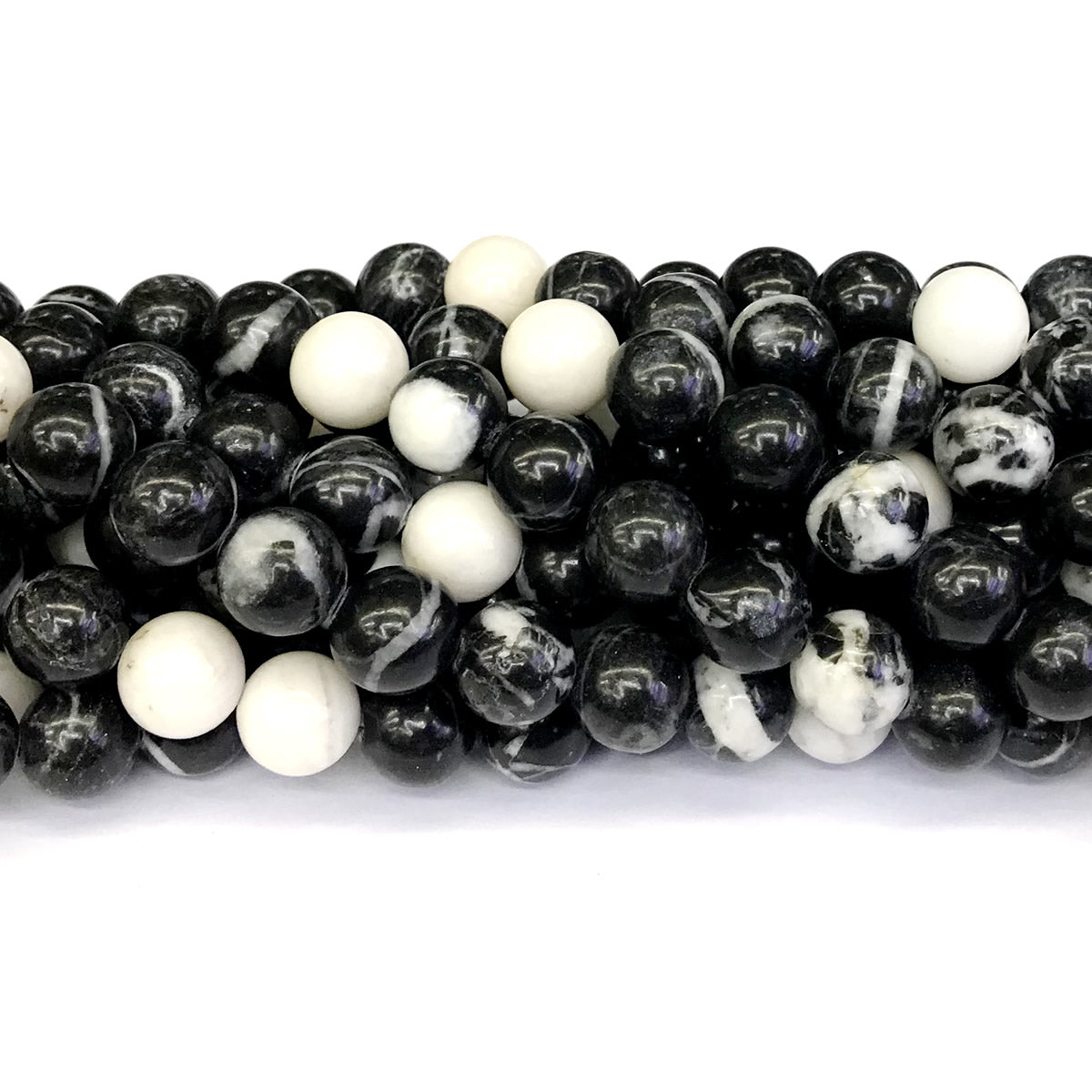 CJP204 Black & White Jasper Beads Smooth Round 12mm 15" Strand