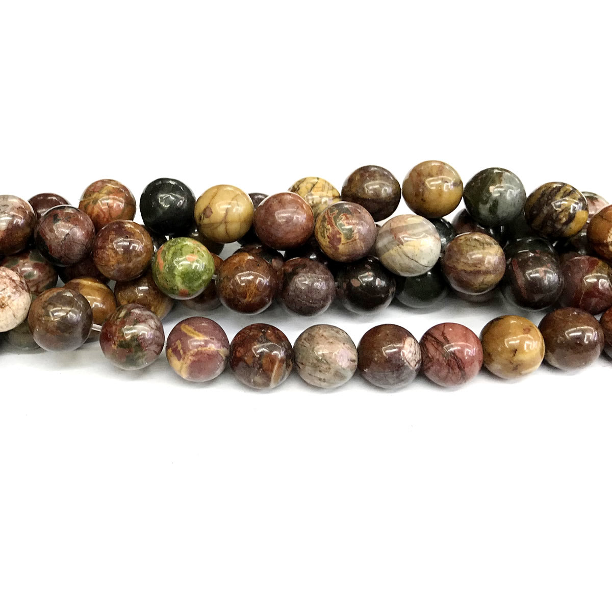 CJP352 Picasso Jasper Beads Smooth Round 10mm 15" Strand