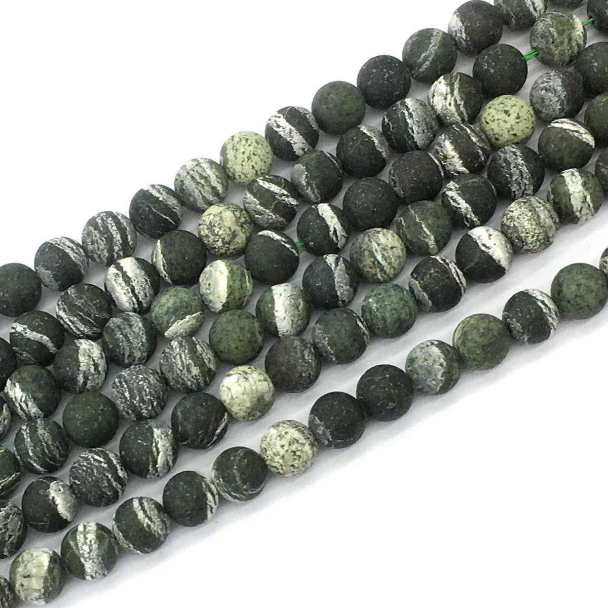CJP460 Green Zebra Jasper Beads Matte Round 8mm 15.5" Strand