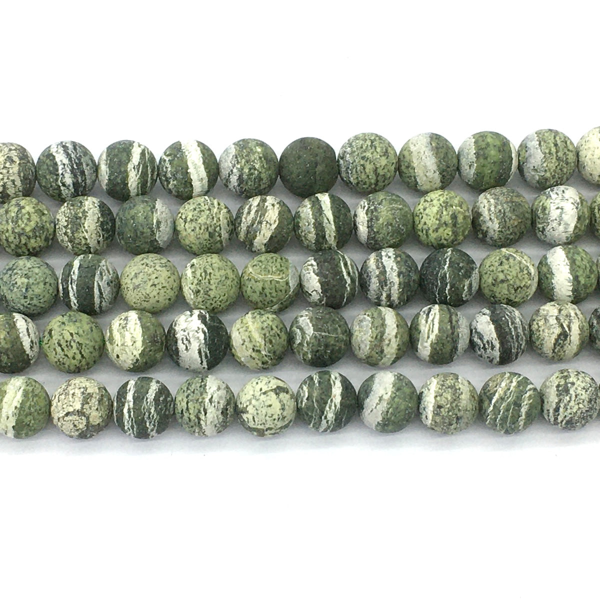 CJP461 Green Zebra Jasper Beads Matte Round 10mm 15.5" Strand