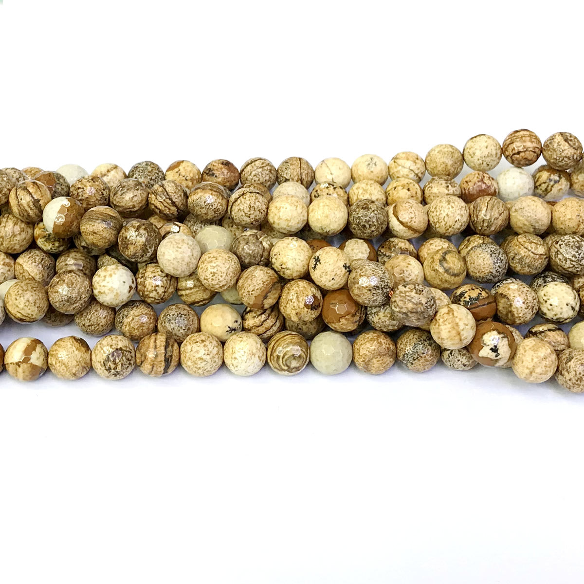 CJP48 Picture Jasper Beads Faceted Round 8mm 15" Strand