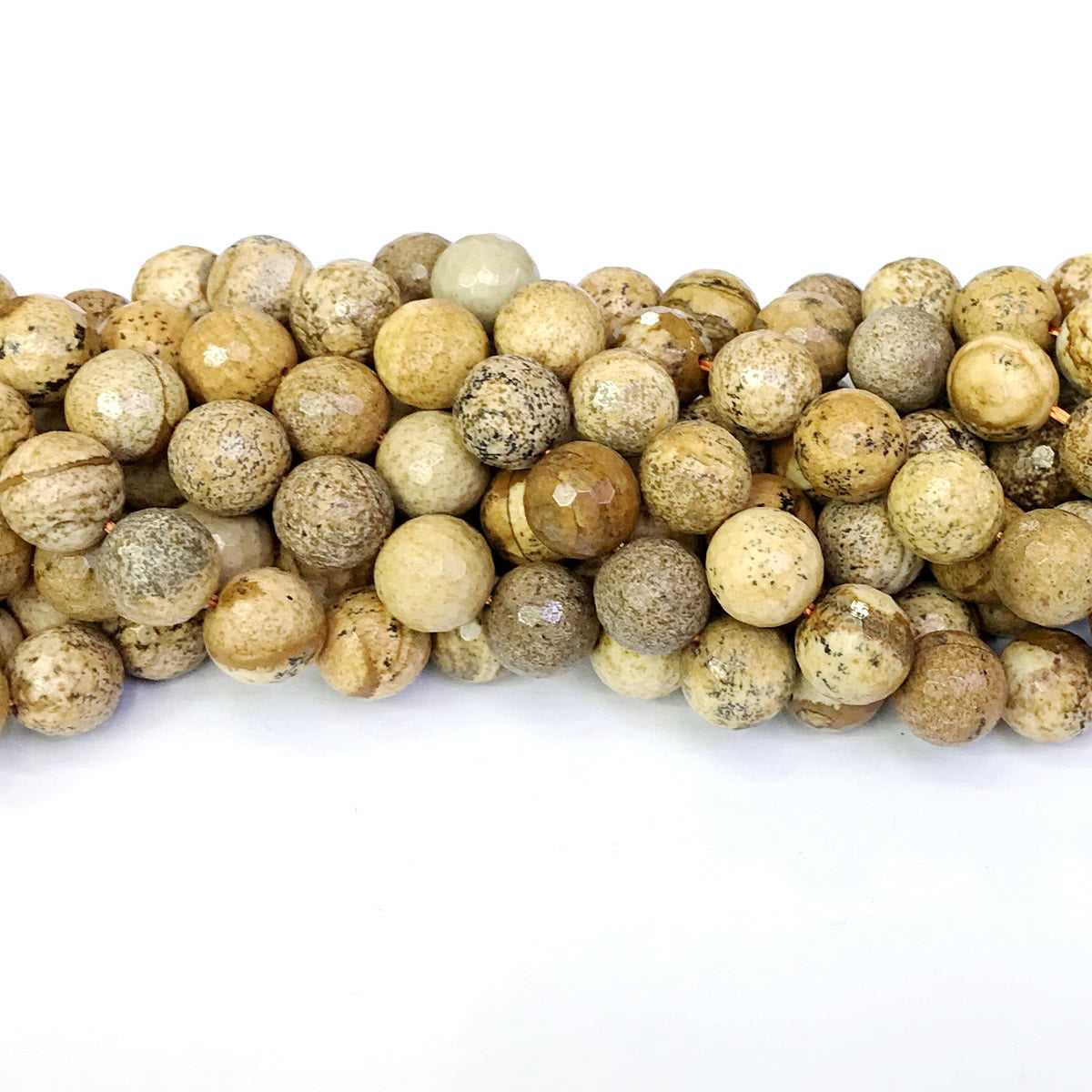CJP49 Picture Jasper Beads Faceted Round 10mm 15" Strand