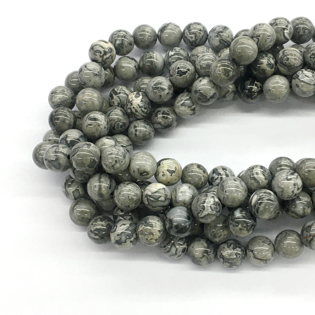 CJP93 Grey Picture Jasper Beads Smooth Round 10mm 15.5" Strand