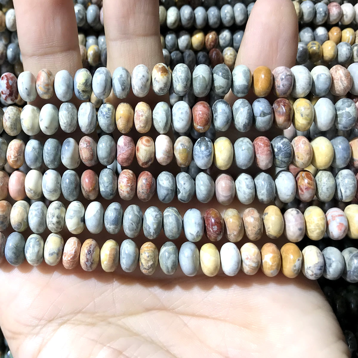 CRB282 Sky Eye Jasper Beads Smooth Rondelle 5x8mm 15" Strand