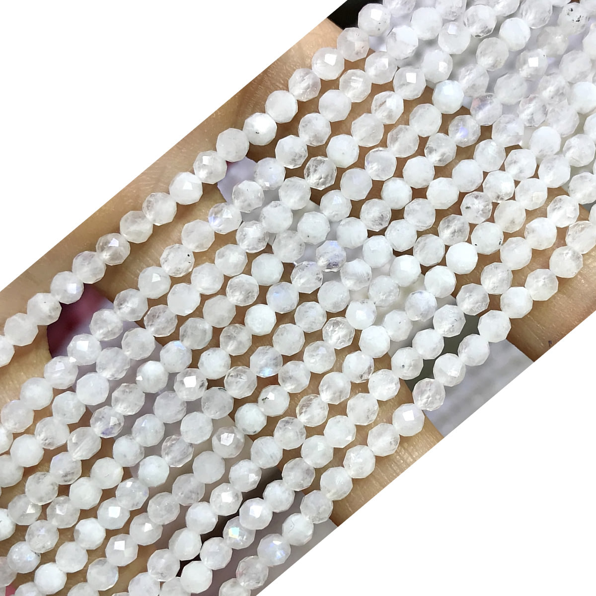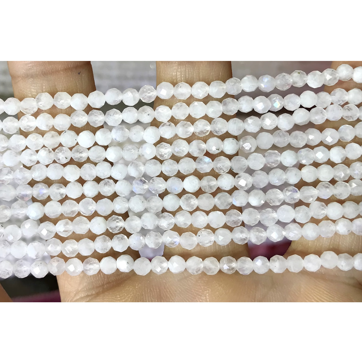 CTG201 White Moonstone Beads Faceted Round 3mm 15" Strand
