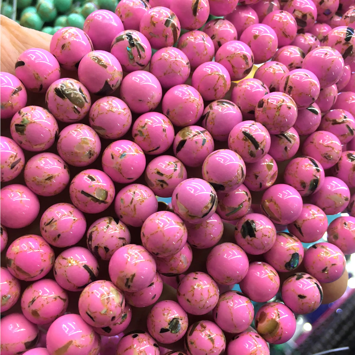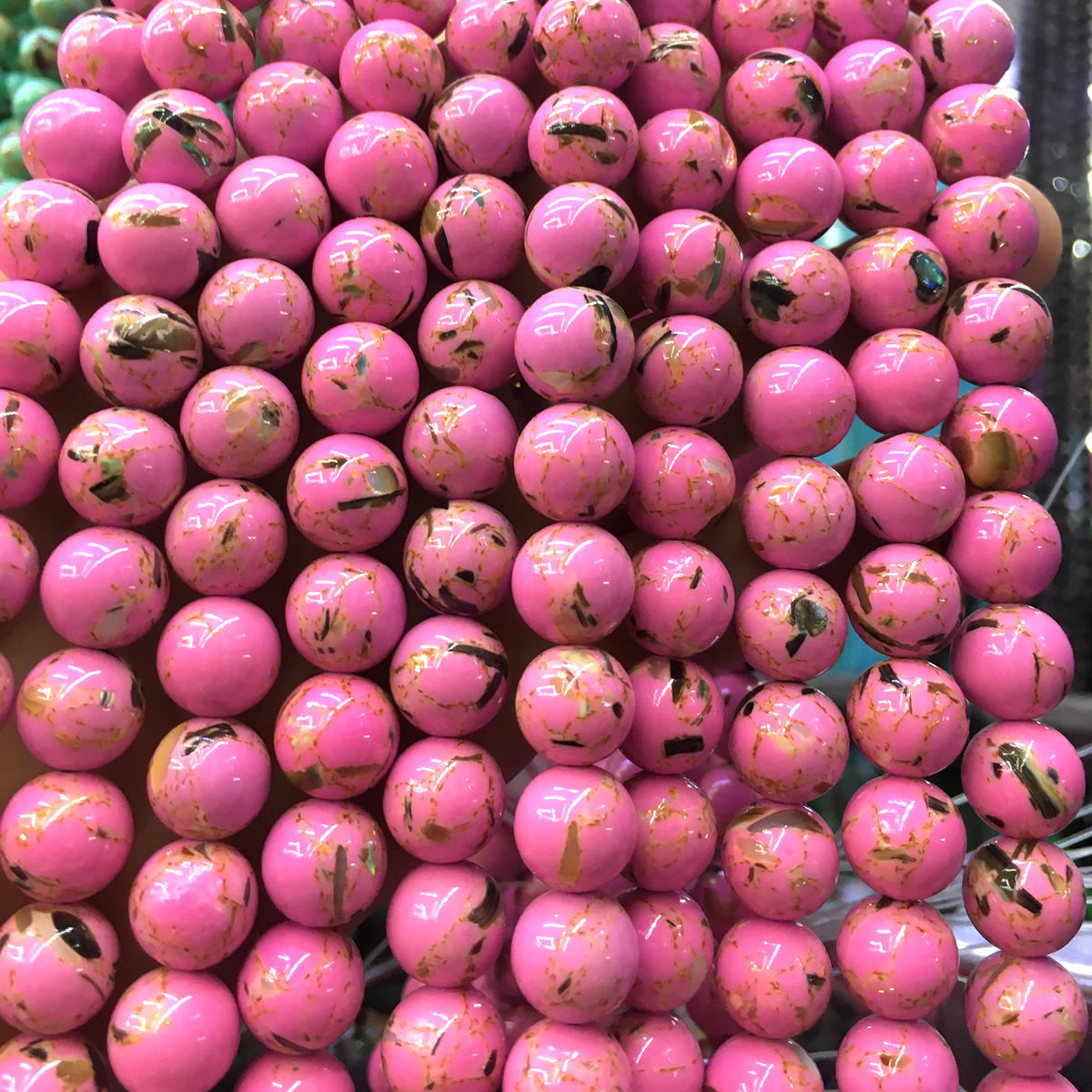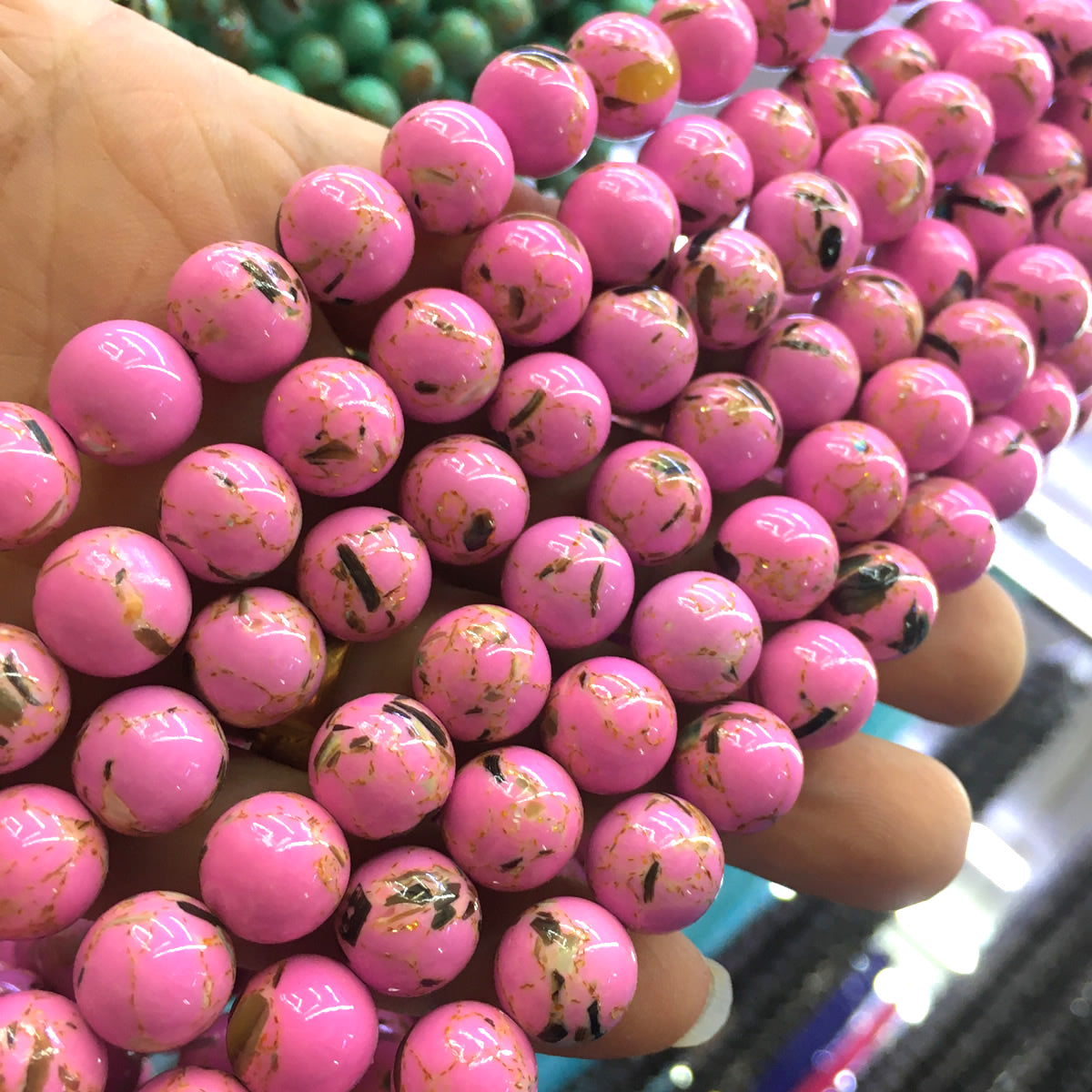 CTU44 Gold Vein Turquoise Beads Smooth Round 8mm 15" Strand