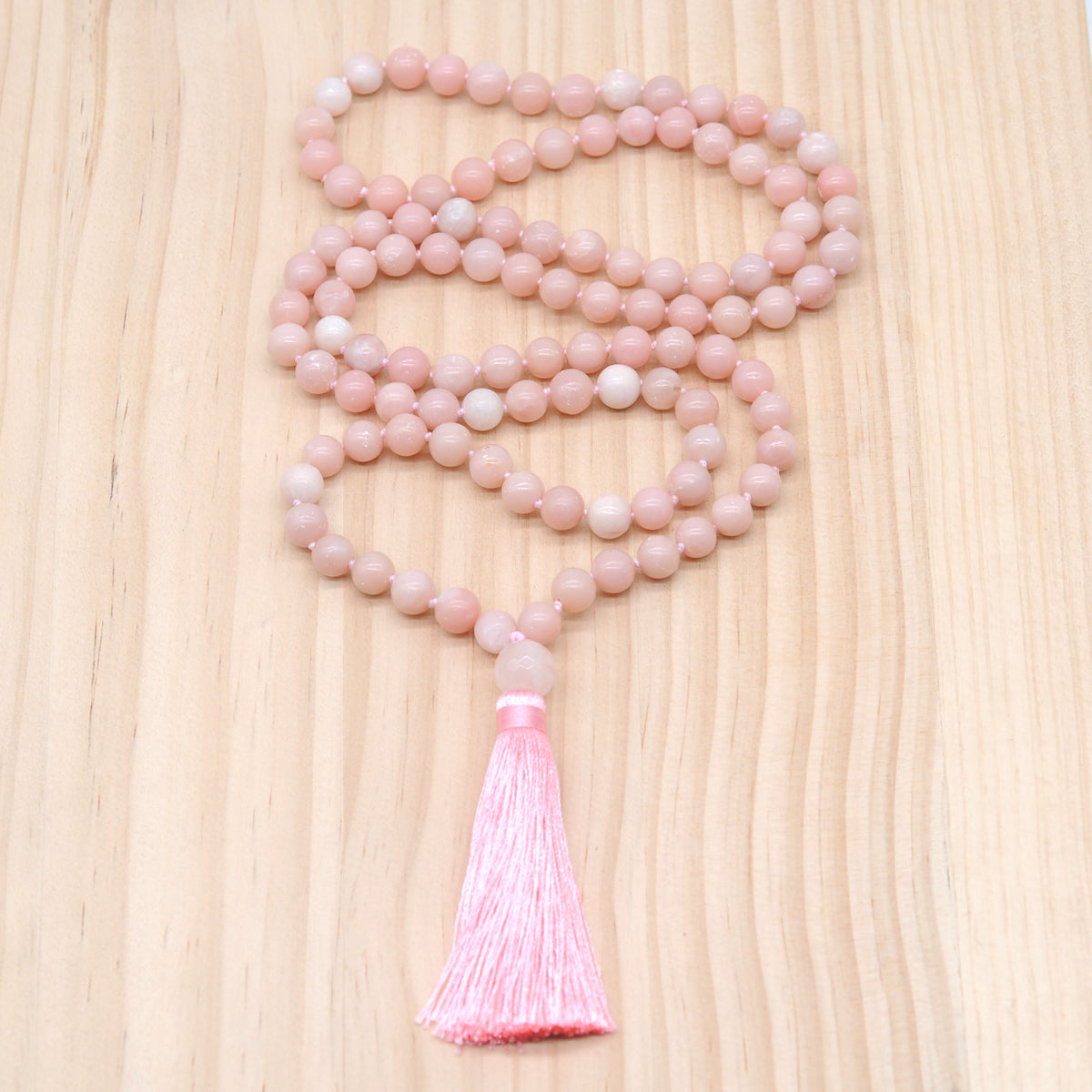 Style No.2: 8mm smooth Chinese pink opal, 12mm smooth Chinese pink opal guru bead & silk tassel (You can choose different tassel)