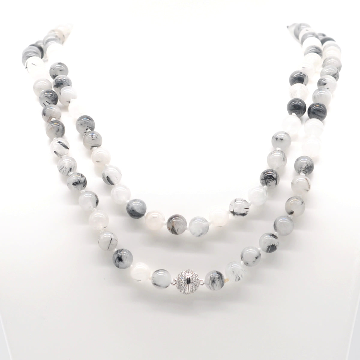 8mm/10mm Round Black Rutilated Quartz, 10mm/12mm Round Zircon Magnetic Clasp & No.72 Jade Thread